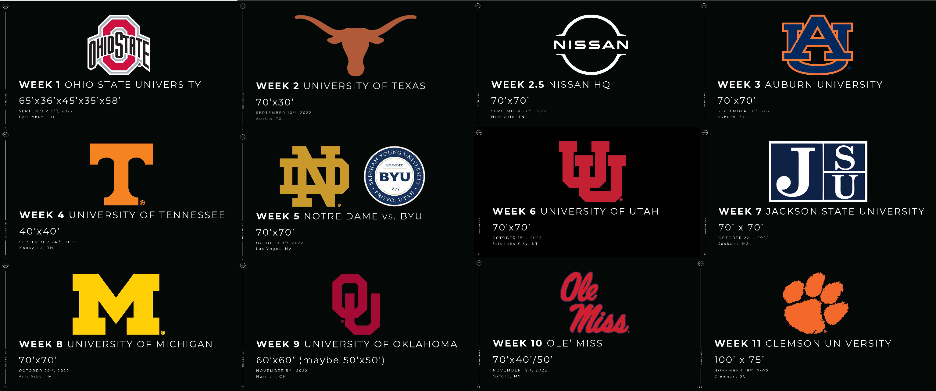 Creating different assets for the several races including; fences, podiums, pit stops, benches, and tandem brand marketing.